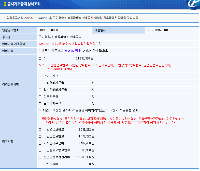 A값은 나라장터에서 기초금액 조회버튼을 클릭하면 확인할 수 있습니다.